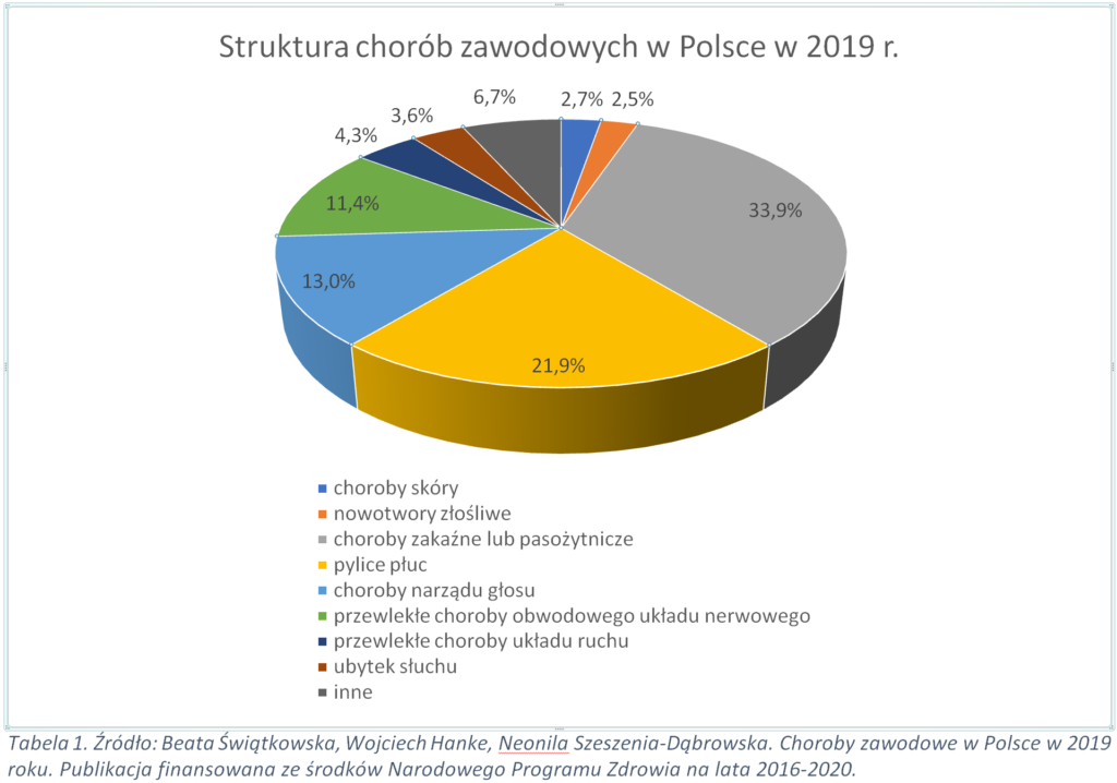 Choroby zawodowe wywołane zapyleniem w miejscu pracy: